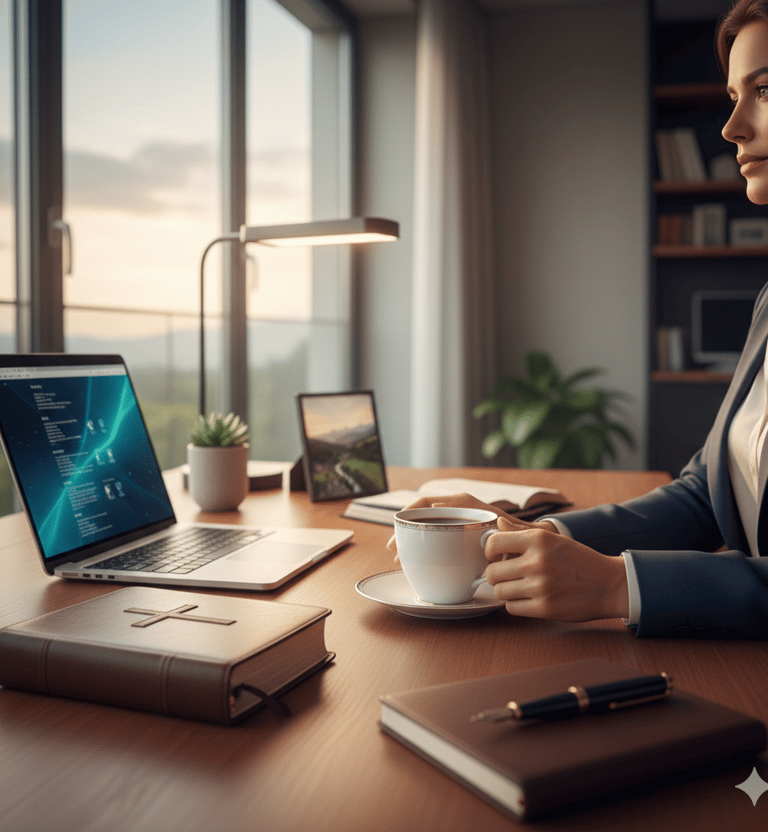 Minha metodologia é desenhada para mulheres que buscam o domínio absoluto sobre a ansiedade, o estresse e os desequilíbrios que roubam sua paz. Eu não trabalho apenas no alívio de sintomas; eu entrego um protocolo de transformação que une o rigor científico da Neurociência (Harvard) com a profundidade da Psicologia Cognitiva e o suporte inabalável da Fé.